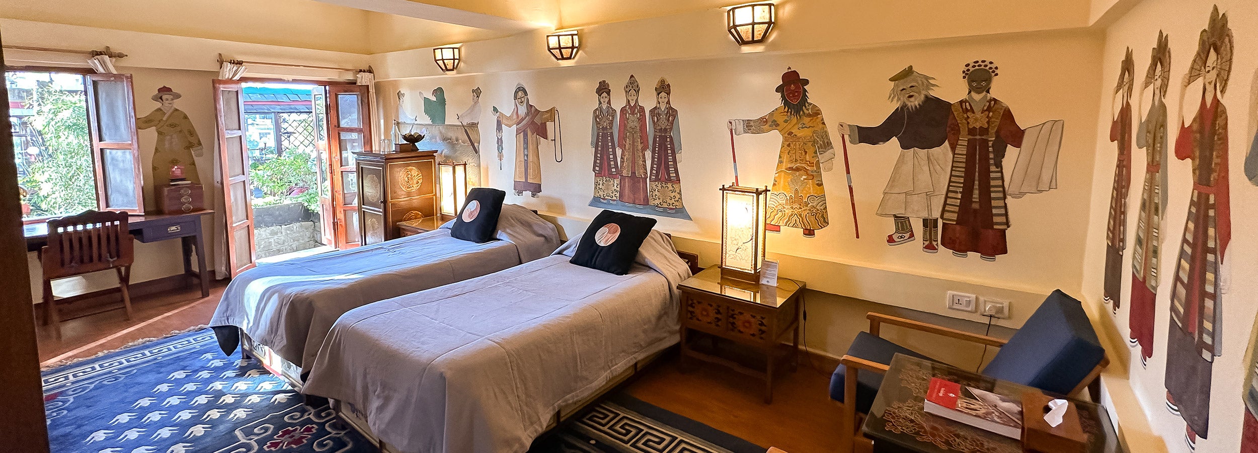Set amidst tall cedars, Chonor Hosue is peacefully removed from the hustle and bustle of the town, and yet within walking distance of everything Mcleod Ganj has to offer. Chonor House is a branch of Norbulingka Institute, designed and built by British architect David Porter in a style intended to blend in with the natural environment of the hills overlooking the Kangra valley. Each of our rooms are beautifully decorated according to unique Tibetan themes featuring regions of Tibet, flora and fauna of the land of snow, Tibet.
