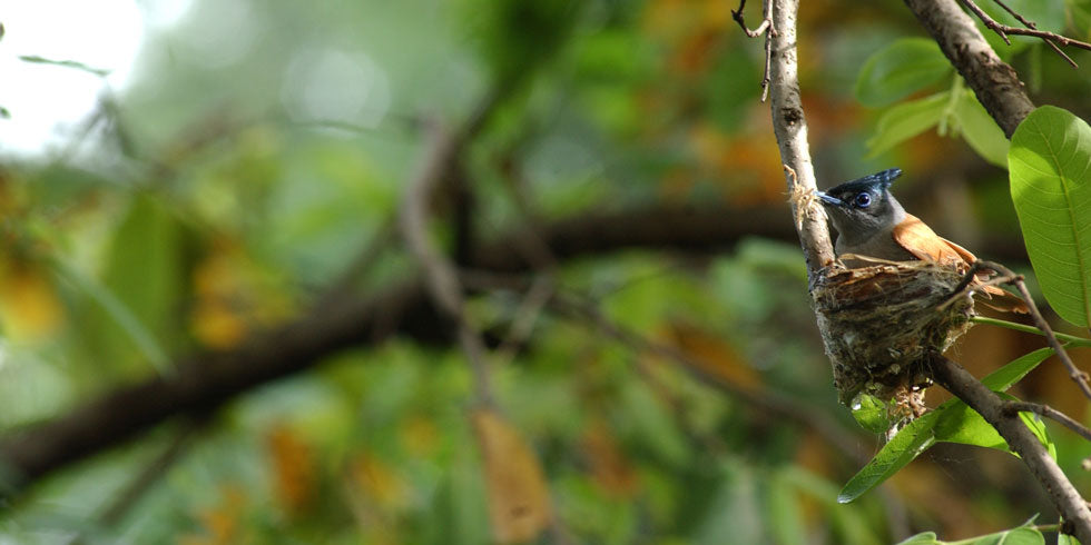 Among our most frequent visitors, many of whom have inspired the designs on our wooden products, are green and rose necked parrots both common in the hills around Dharamsala are native to the Indian subcontinent. Another, is the Paradise Flycatcher, the male with its endless white plumaged tail that waves behind it as it flies. The female, black and orange in color may as well be from another species, so different she is from her partner. They are said to be life mates.