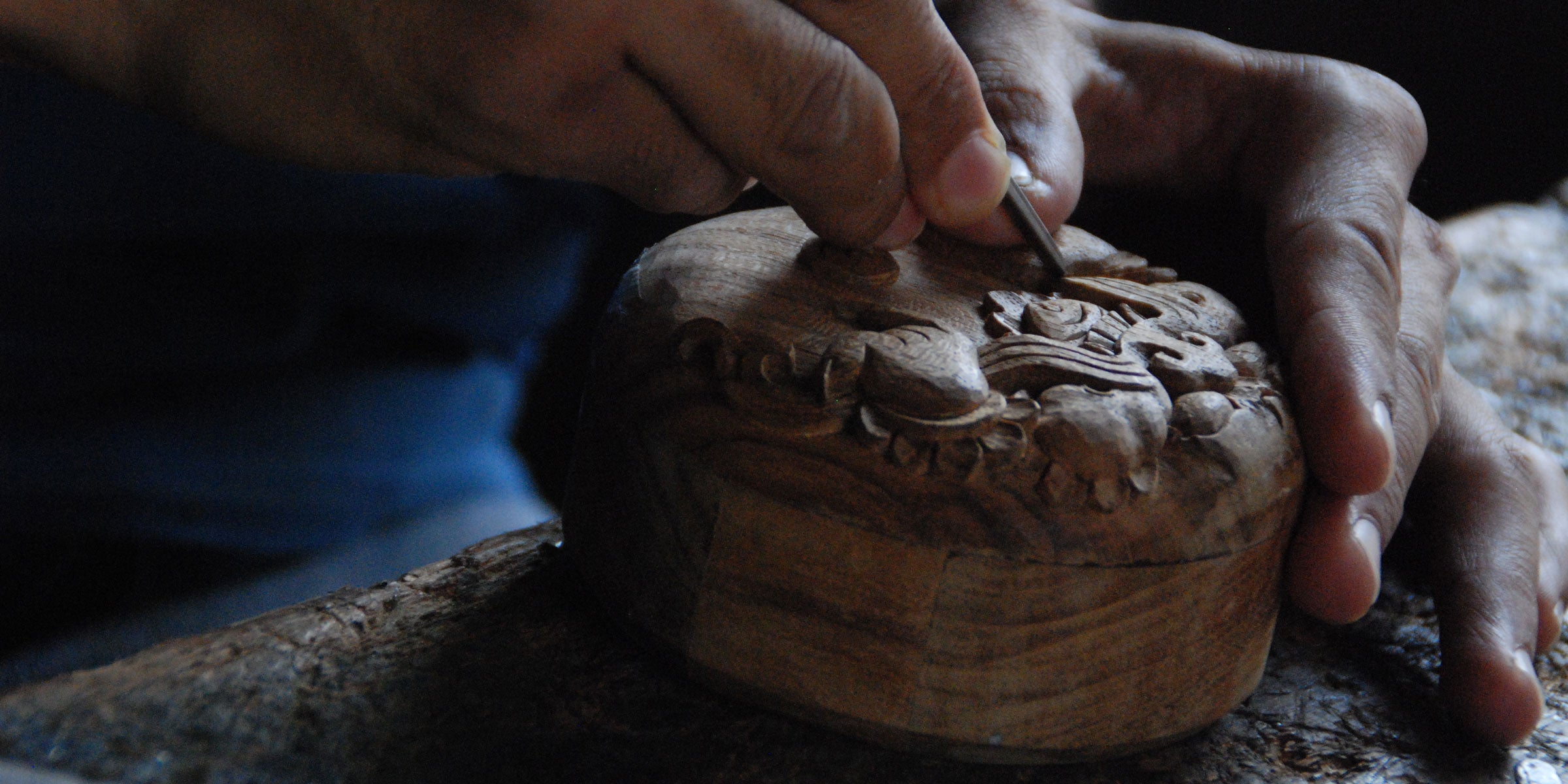 When carving, first, an image of the design is transferred onto the flat surface of the wood. Then, a Tibetan bamboo fret saw cuts out holes in the image. Finally, chisels are used to carve the design from both the front and back, creating depth. The initial training for woodcarving students is three years. For the first few months, students do not practice on wood but only focus on learning to draw traditional designs. Then they are taught how to make their own chisels, which will remain with them for a lifetime, and how to use them. Students first begin carving pinewood because it is much softer and forgiving, and they eventually move on to teakwood. Apprentices must also master fundamental carpentry techniques for cutting and joining pieces of wood. After their apprenticeship is completed, most carving students will have mastered the basic designs and techniques and will be ready to create more elaborate pieces, though the carved thrones and cabinets that adorn the shrine rooms and altars of great homes and monasteries will take many more years of practice.